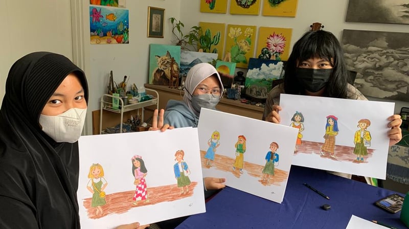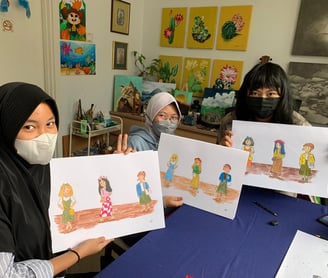 Beginner Class is a class that is intended for children aged 7-12 years. They begin to learn more scalable drawing/painting techniques, such as: point of view, complex composition, spatial structure, and various simple shading/shading images. This class processes a variety of media, such as: colored pencils/pencils, acrylic on canvas